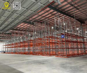 - Loại kệ này sử dụng robot shuttle để lấy các pallet ở sâu bên trong kệ. Mật độ lưu trữ cao.