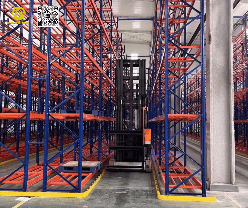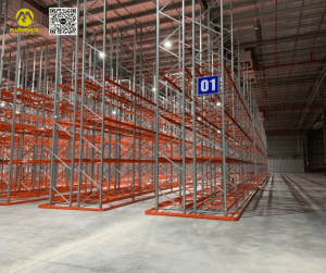 - Hệ thống kệ này cho phép xe nâng di chuyển vào bên trong kệ để lưu trữ hàng hóa. Thích hợp cho lưu trữ số lượng lớn hàng hóa đồng nhất và tiết kiệm diện tích.